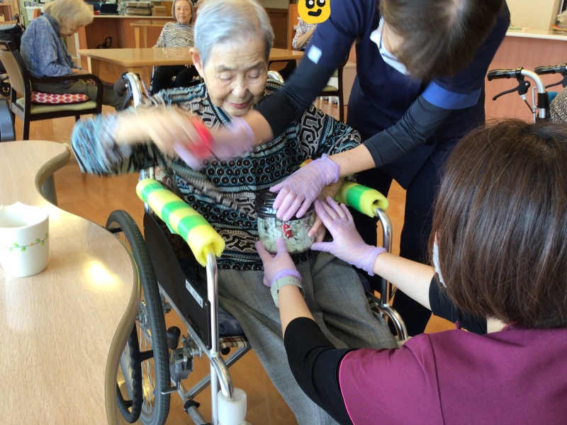 なんと、炊き込みご飯が炊きあがっていなかったのです……。原因は具材の入れすぎとのことでした。それでも、ベテランスタッフが鍋でご飯を炊き上げてくださり何とか完成!すこーしだけ芯が残っているところがあるかなぁといった出来具合でしたが、「味付けはばっちり」「キノコの風味がいいね」とお言葉をいただいたので及第点でしょうか……。別の機会でリベンジしたいと思います!