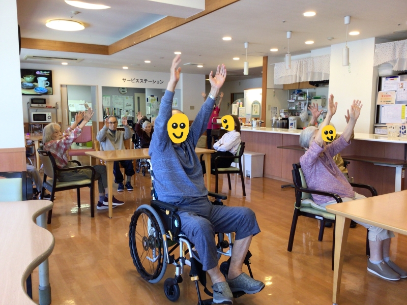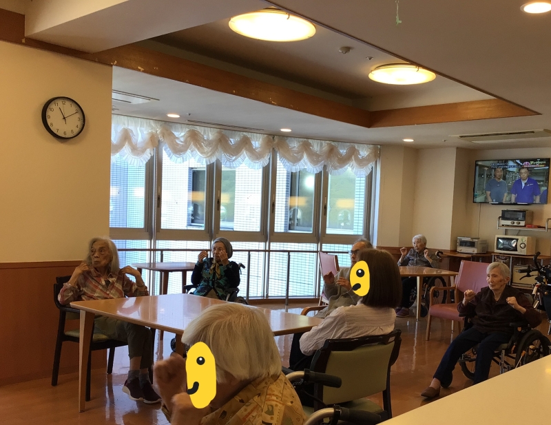 施設の中で生活をしていると運動量が減少してしまいがちですが、この機会を皆様存分に活かし「今日の体操は何時からかな?」と楽しみにされているので日々の健康促進に貢献できているようです。いきいき体操万歳!