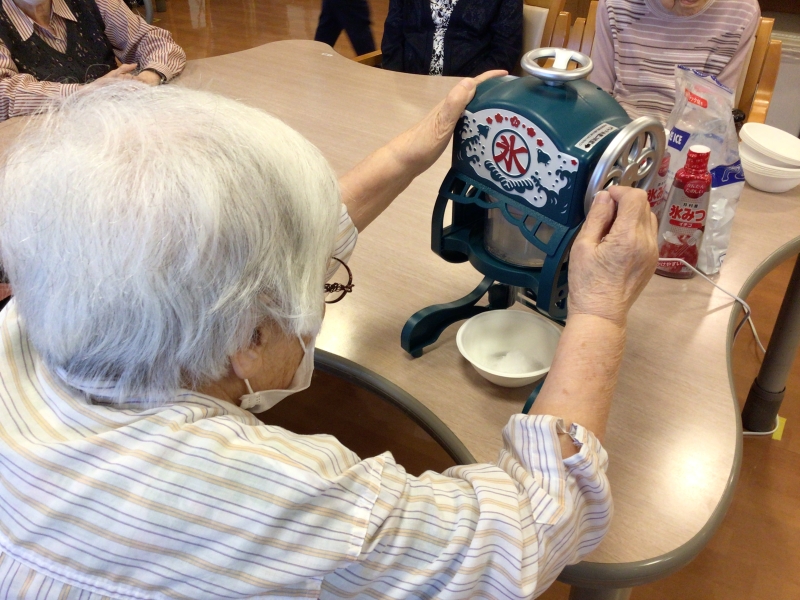 ひまわりでは9月の終わりに、フロアレクでかき氷をおやつに提供しました!