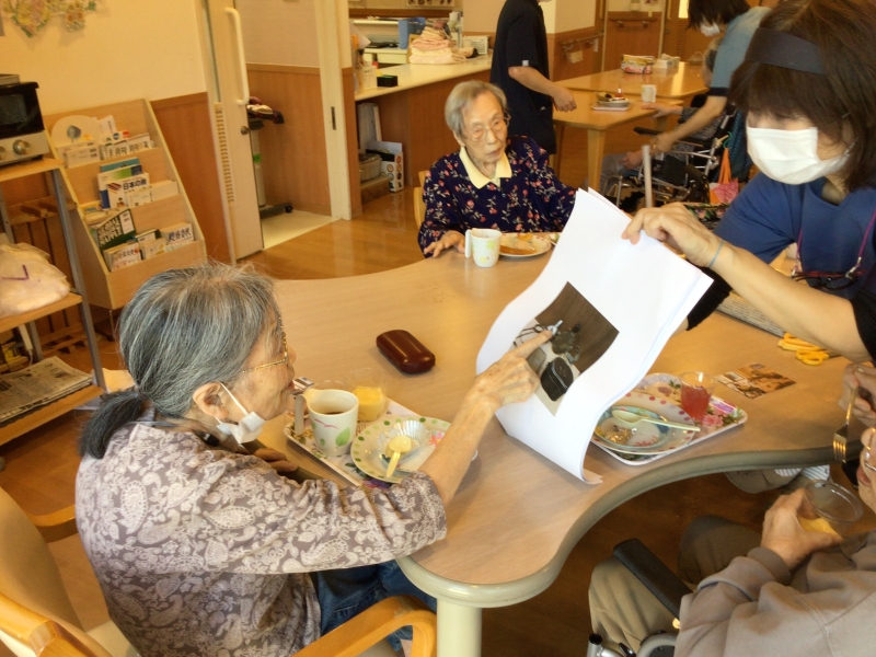「これ使いよったわ~」「これはこうして使うんよ」などと教えてくださったり、トークボックスを使って「楽しかった時代」「苦労したこと」など昔を振り返りながら笑顔と会話の花が満開になった5階フロアでした。