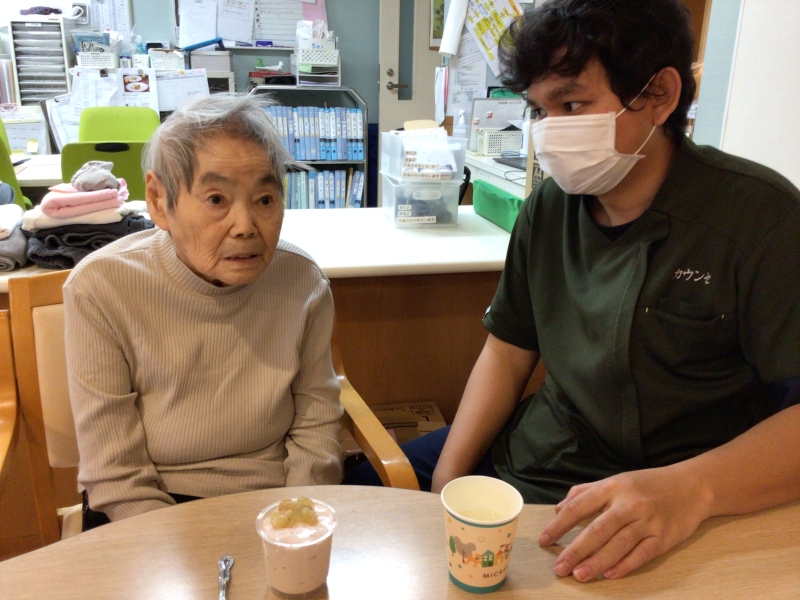 入居者様と材料を混ぜたり、フルーツを切ったり、ワイワイ楽しく作り、順調に完成することができました!