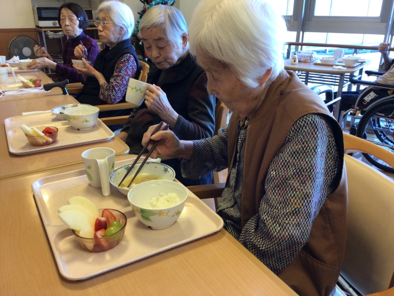 年末には、クリスマスや餅つき会、正月は新年会や書初めがあり季節を感じて頂けるような行事を行っています。今後とも、入所者様には、楽しんで頂けるよう行っていきたいと思いますので、来年もよろしくお願いします。