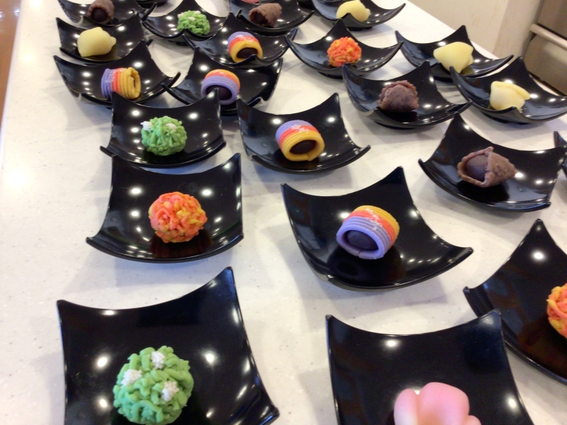 色とりどりの色んな種類の和菓子をご用意し、食べたいものを1つ選んで頂きました♪