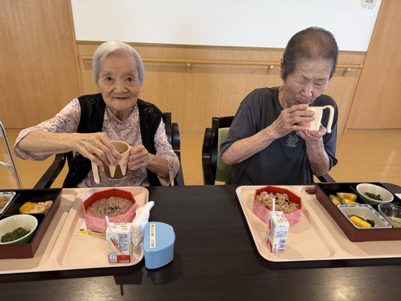 お赤飯にみなさん「ありゃー、今日は祝い事じゃね」と嬉しそう。