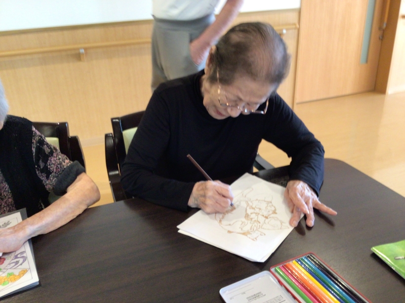 今日は、スキマ時間に、塗り絵をご利用者様と行いました。