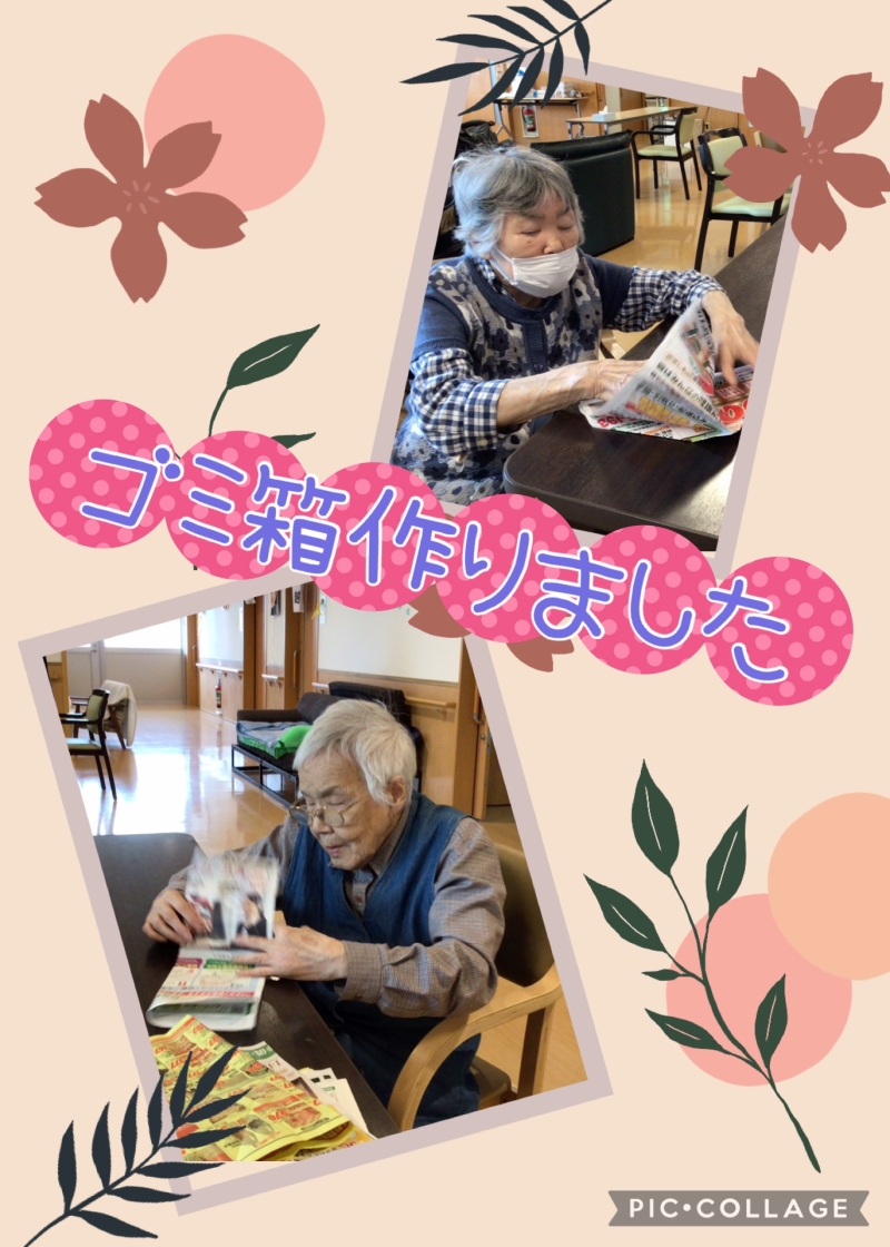 今日は、隙間時間に広告で、ご利用者様がごみ箱をつくってくださいました。