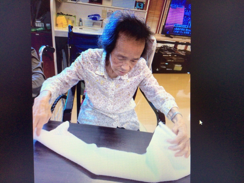今日も、ご利用者様が、洗身タオルを畳むのをお手伝いしてくださいました