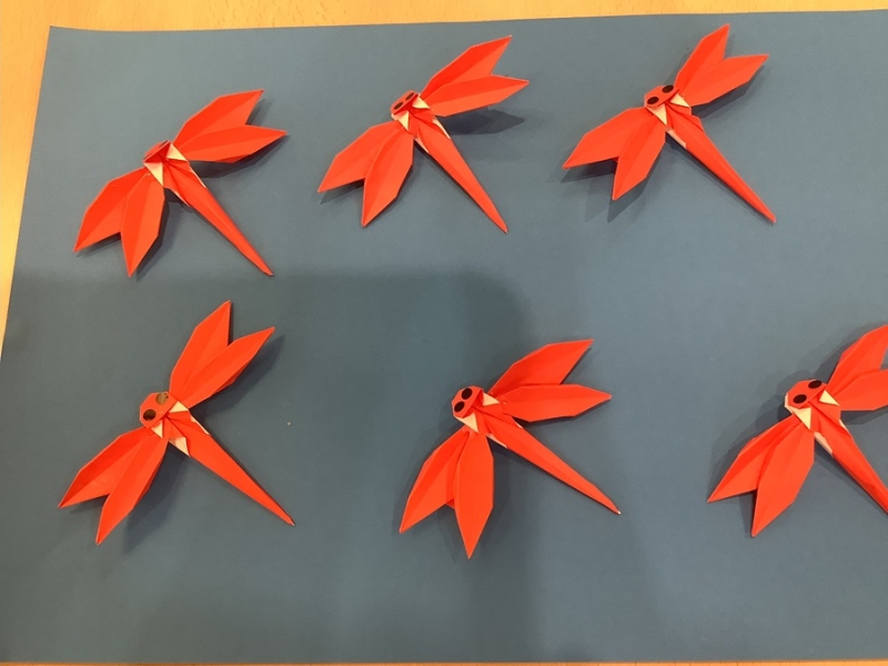 トンボの出来上がり お部屋の前のネームプレートに飾っていただきました