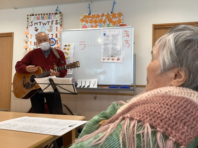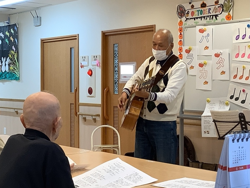 ギターの演奏で秋の歌を一緒に大合唱です。