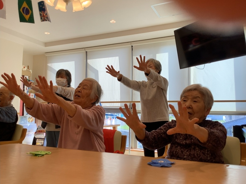 音楽レクが終わったら12月の準備が待ってますね、今折り紙で折っているのはミニミニクリスマスツリーです。 今回はこれで終了です。 リズム体操をすることで脳の活性化ができました。 どんどん若返るかな??? ではまた来月をお楽しみに♪♪♪