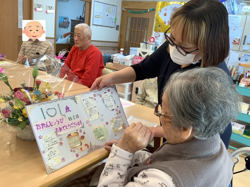 101年の前半の歴史は壮絶なものだったはずですがとっても明るくいつも大きな声でおなかから出る笑い声に癒されています、良い人生を過ごして来られたのでしょう。