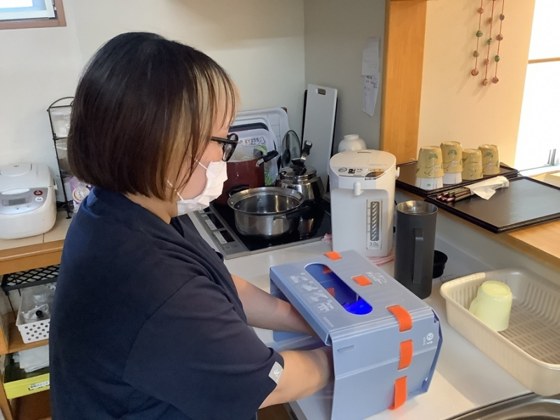 感染対策の研修も受けました。しっかりと手が洗えているかブラックライトを当てて確認です。