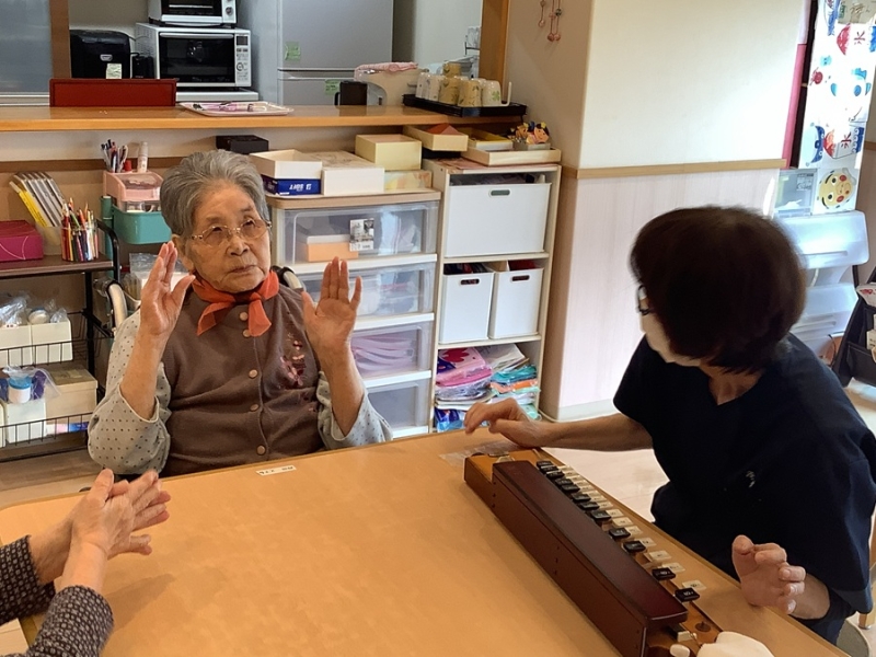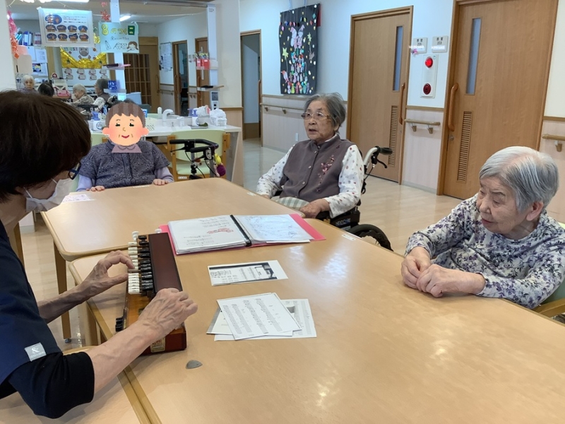 スタッフによる 大正琴演奏 普段フロアに出られない方の為にサクラサクラを一緒に歌いました