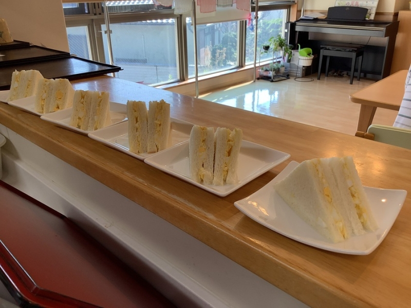 ある日はスタッフ手作りのおやつ、卵サンドです