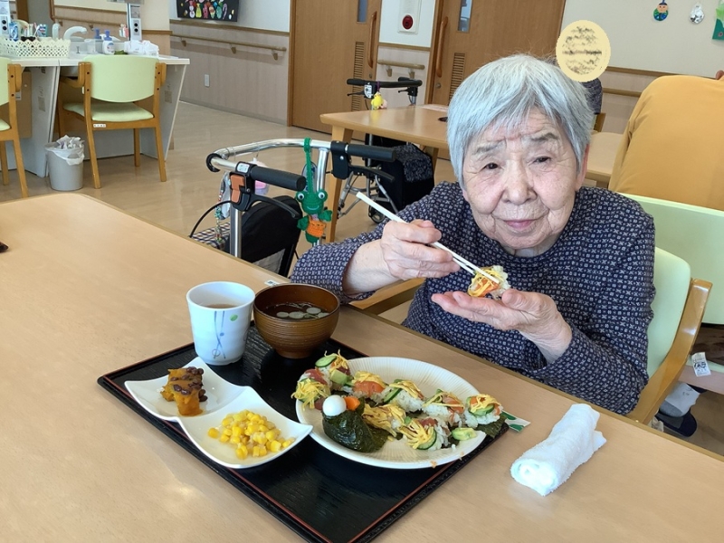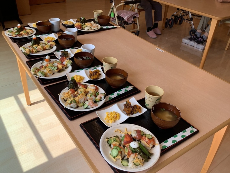 それぞれ皆さんの個性的な手まり寿司が並んでいます。