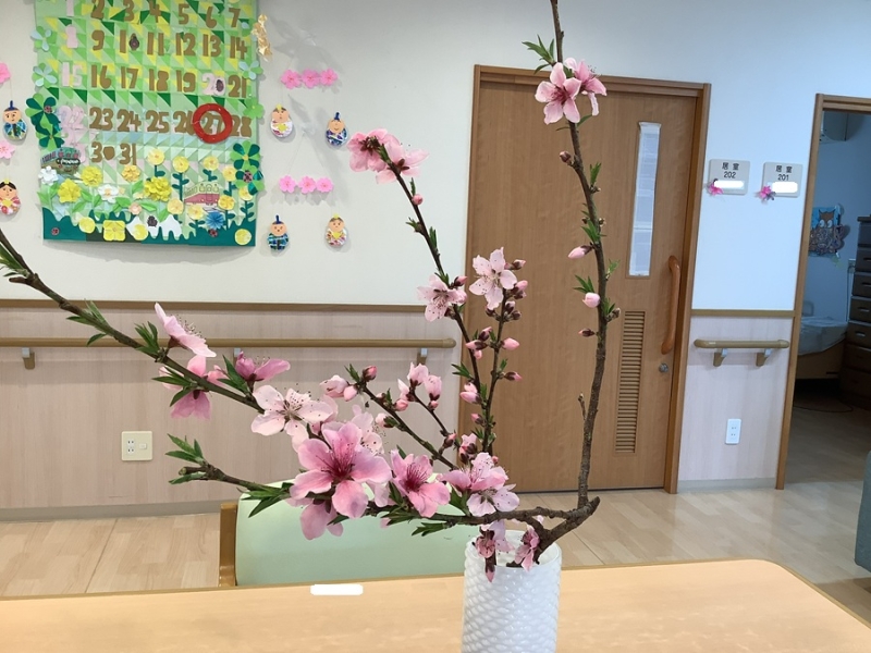 ボランティアさんが桃の花を持って駆けつけてくれました。