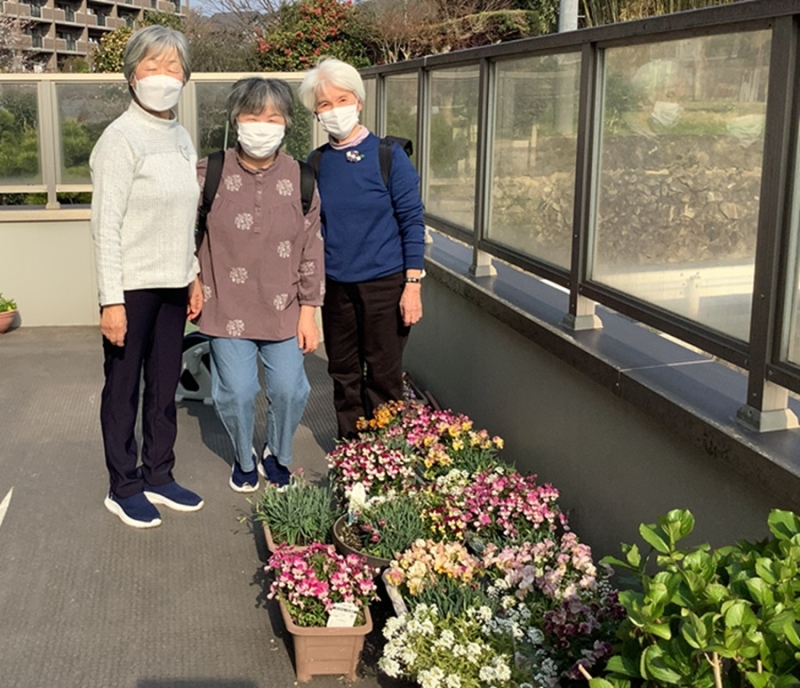 ボランティアの皆さんありがとうございました。 バルコニーに出てカーメン君からプレゼントされたお花と一緒に