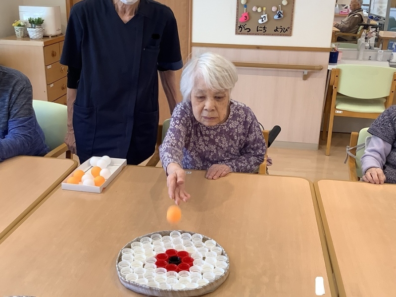 輪の中心にピンポン玉を入れるほど高得点になります。さぁ~真ん中に行きますか!