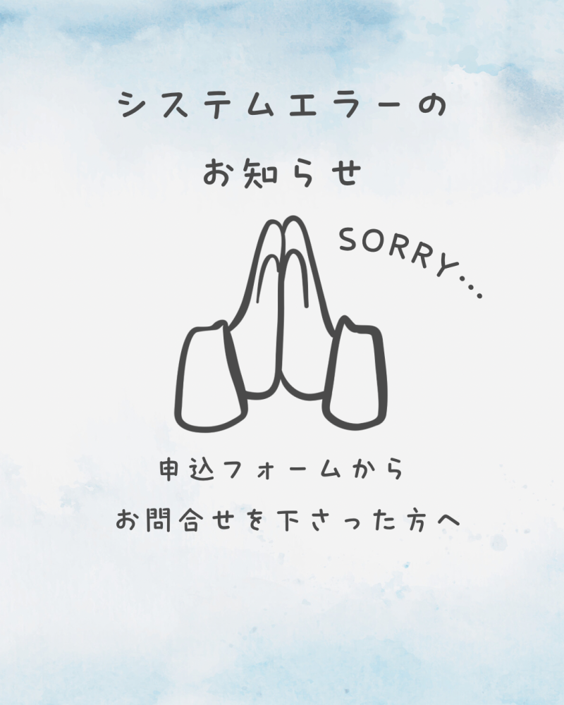 システムエラーにより申込フォームからのメールが、数日間受信できていないことがこの度発覚いたしました。