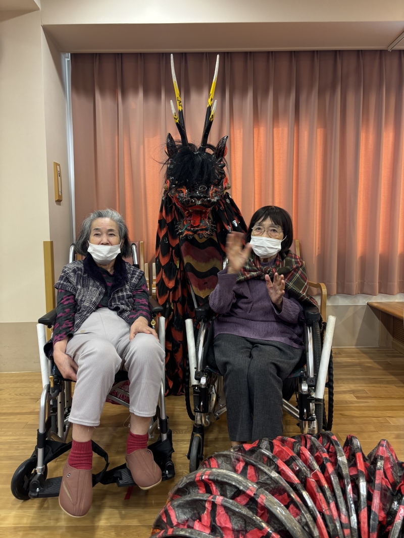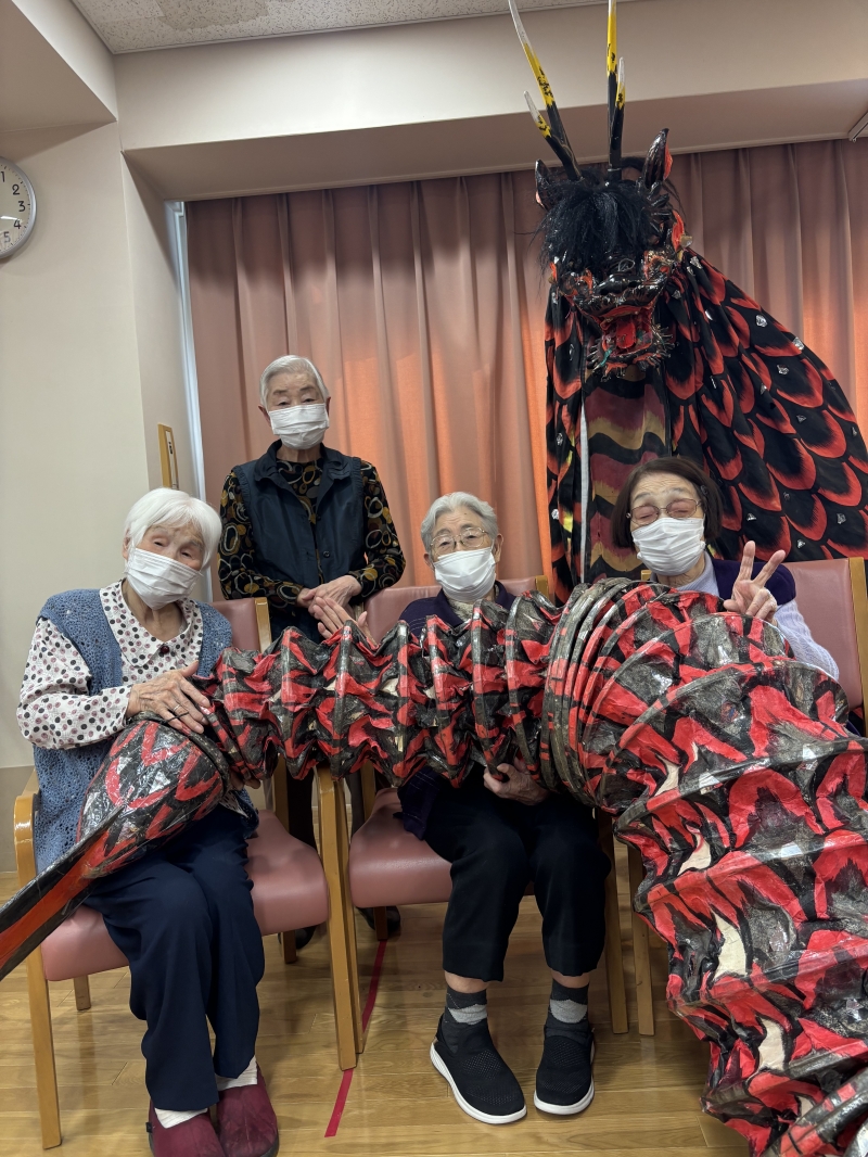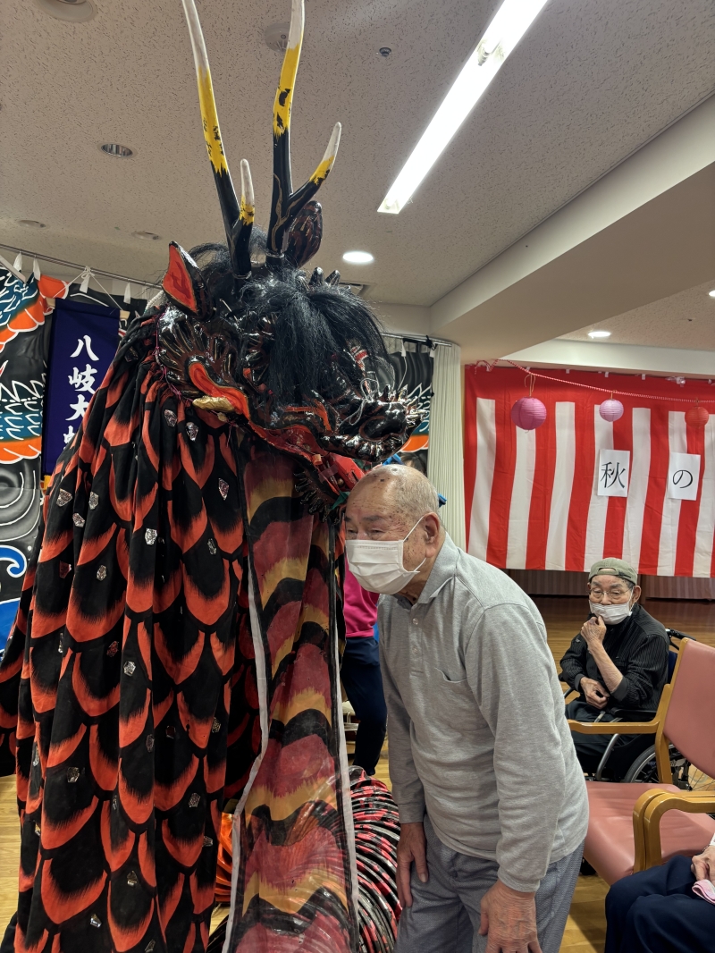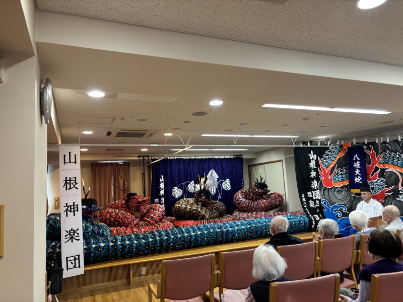 午前の部では山根神楽団の皆様に神楽を実施していただきました。皆様とても喜ばれておられました。