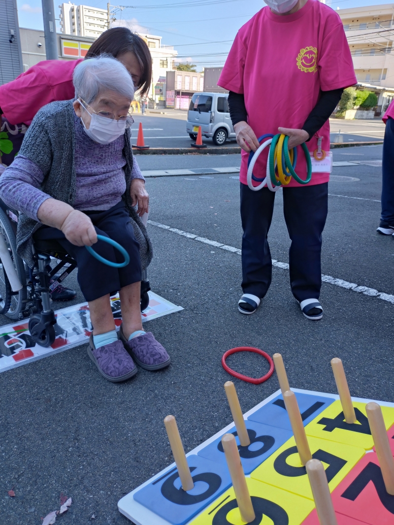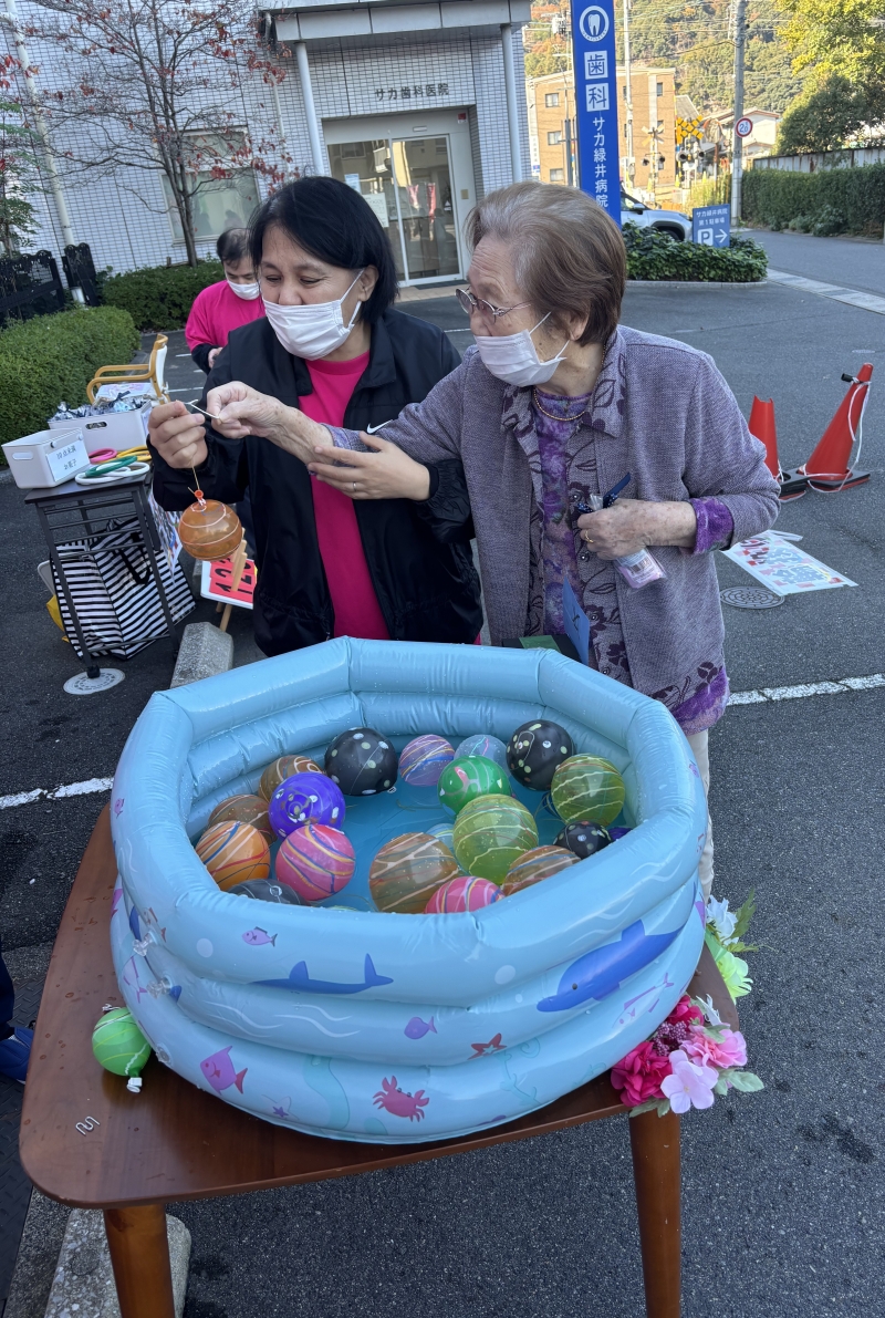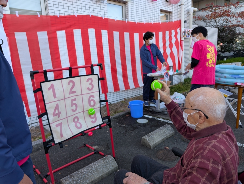 駐車場では縁日でストラックアウトや輪投げやヨーヨー釣りを実施しました。子供や入居者様楽しまれておりました。