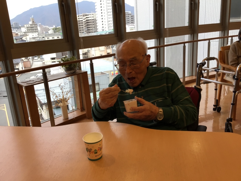 入居者様と材料を混ぜたり、フルーツを切ったり、ワイワイ楽しく作り、順調に完成することができました!