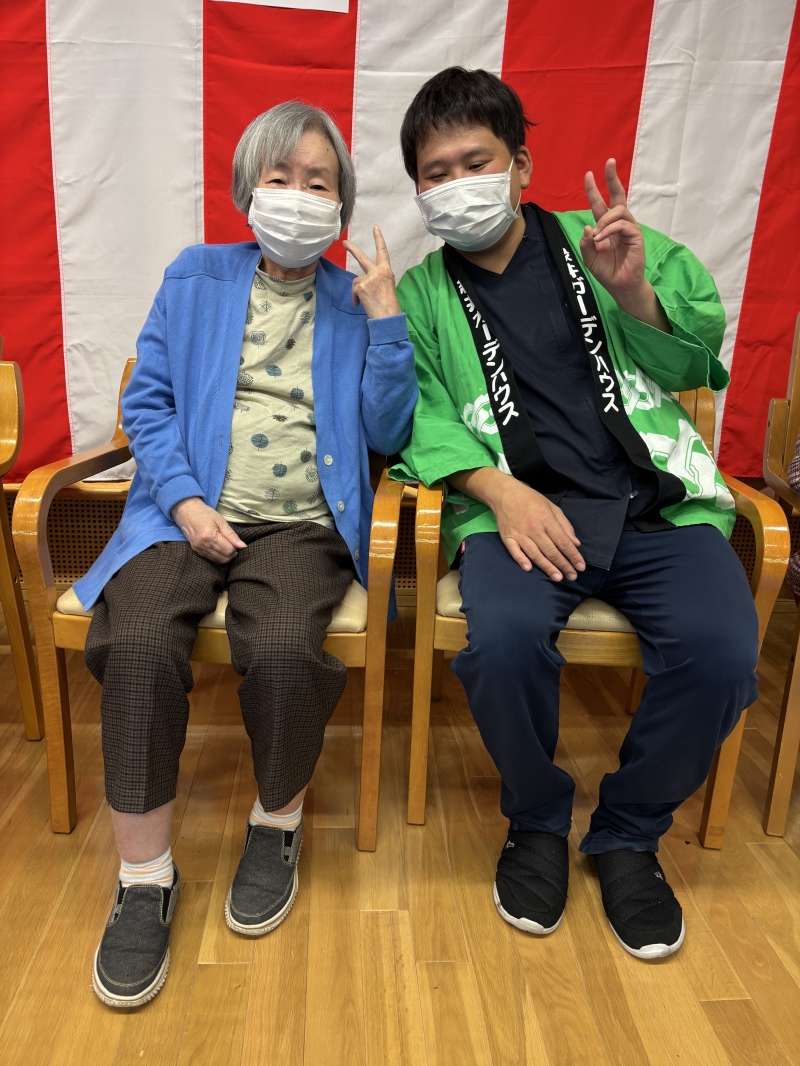 入居者様にもちの返しをお願いしてタイミングを合わせながら一生懸命もちをつきました。