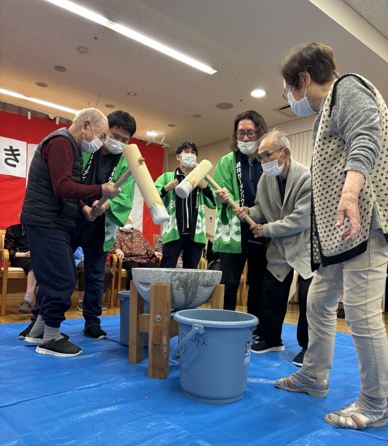 緑井ガーデンハウスでは今年最後の行事でもちつき会を行いました。