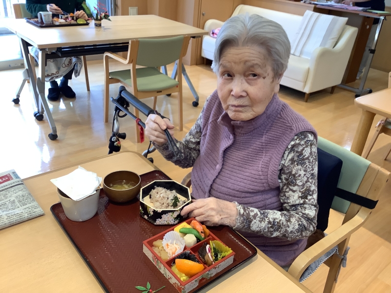利用者さんに美味しいおせちを食べていただきたいと思い、厨房さんにお願いしておせちを作っていただきました♪