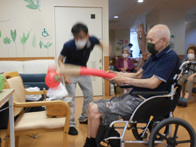 実はスイカ割りレクと称してますが、たまにイチゴのボールが乗っていることもあるとお気づきでしたか?(o^―^o)