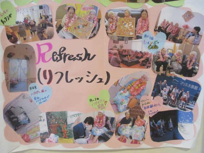・ハワイアン足浴 ・レインボーカフェ(月に1回) ・B浴室改造(南国”をイメージ) ・第3金曜日 チェアヨガ ・5/24 水族館へ行こう~少人数外出レク~