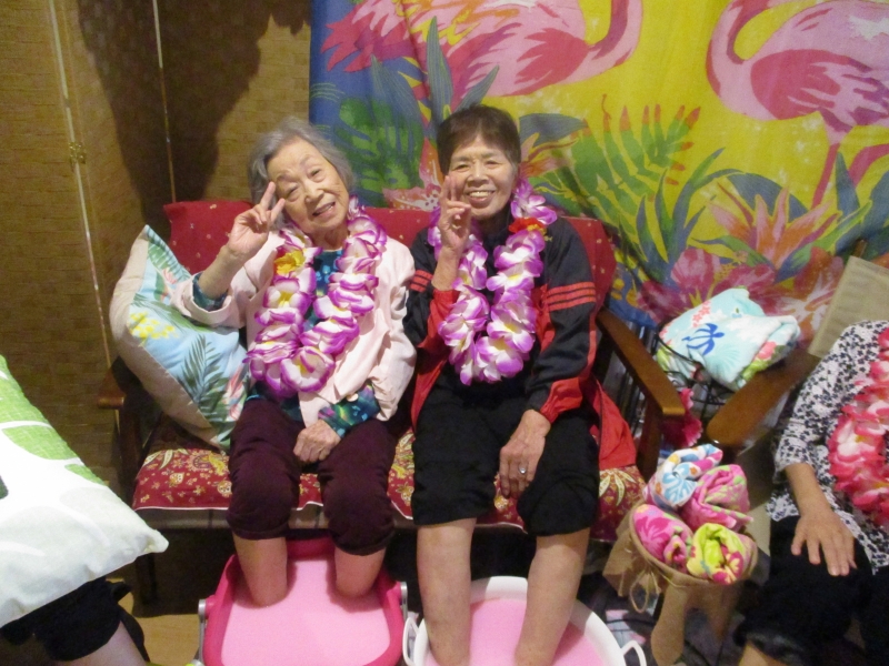 としてハワイアン風な空間にて足浴や交流会を開催し、気分転換をしてもらっています。
