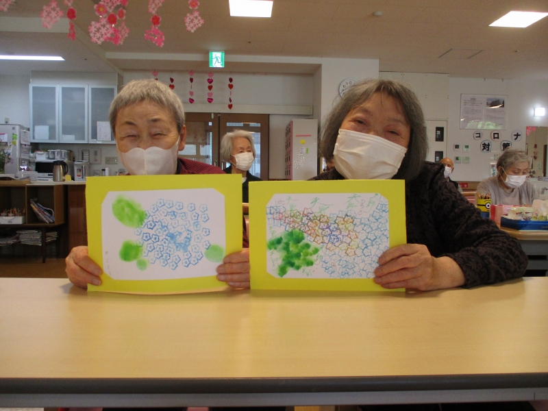 今月の制作レクは※アジサイ※の模様を描いたカード作りをしました!