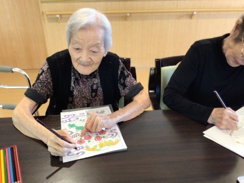 今日は、スキマ時間に、塗り絵をご利用者様と行いました。