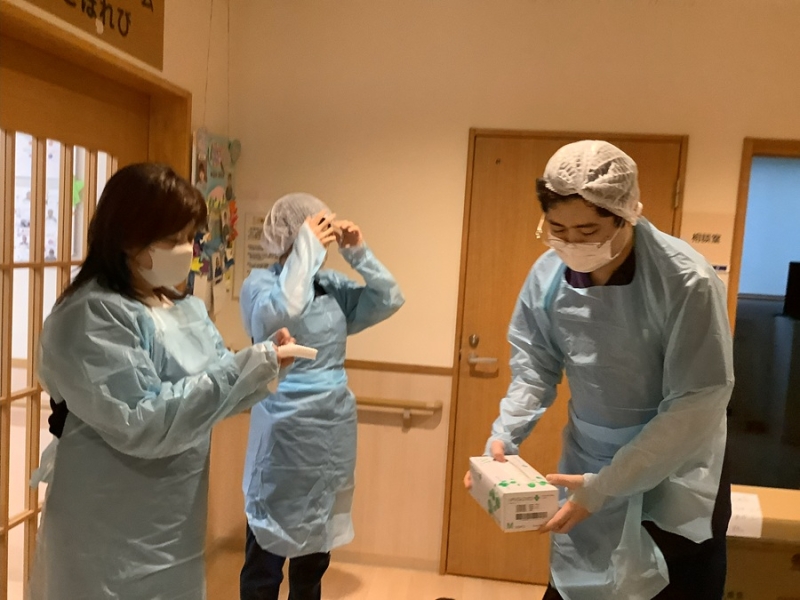 BCPの研修も実際に災害時に感染が起こった事を想定して訓練を行いました ガウンテクニック