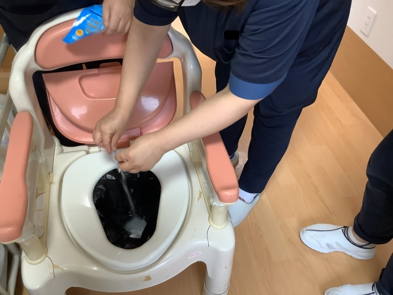 トイレも困るところですね 排泄物を固めて ポイっ!と 災害はいつ起こるかわかりませんから日ごろからの訓練が大事ですね。 来月は鍋パーティーをします。 どんな鍋ができるのかお楽しみに!!