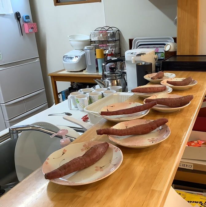 歌レクをしていただいている間に蒸かし芋もできました。 ペロッと頂きました、いっぱい運動をしましたからね