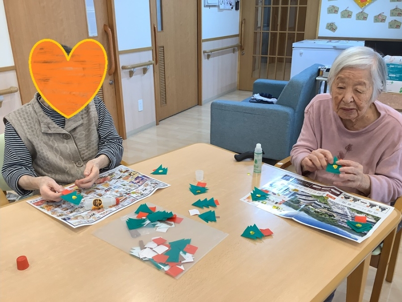 音楽レクが終わったら12月の準備が待ってますね、今折り紙で折っているのはミニミニクリスマスツリーです。 今回はこれで終了です。 リズム体操をすることで脳の活性化ができました。 どんどん若返るかな??? ではまた来月をお楽しみに♪♪♪