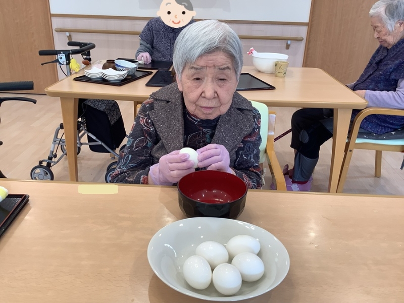 沢山ある茹で卵の殻を剥くお手伝いをしてもらいました。