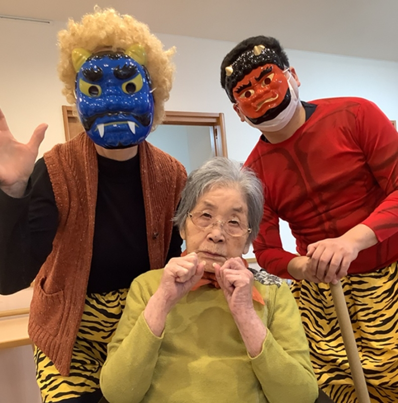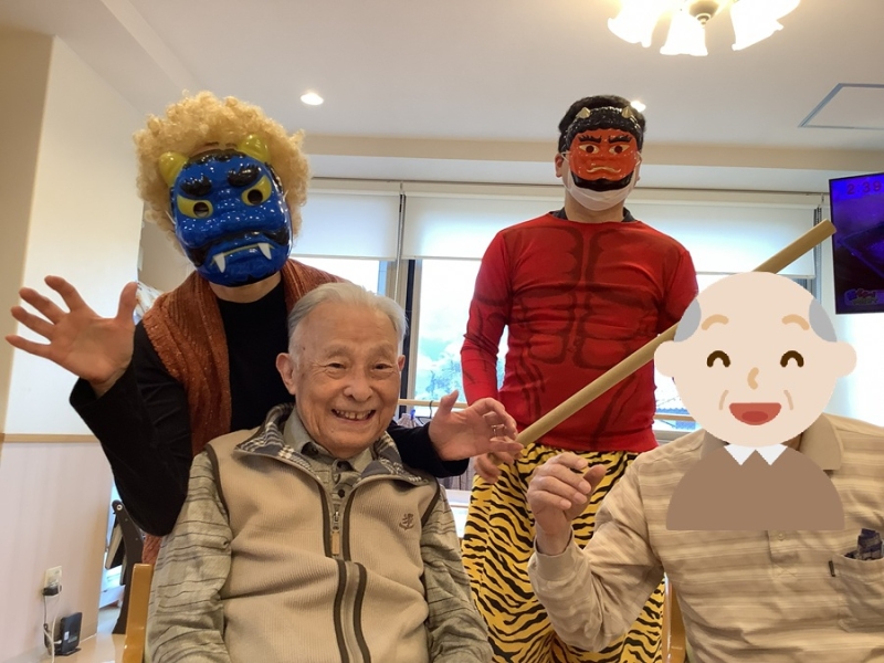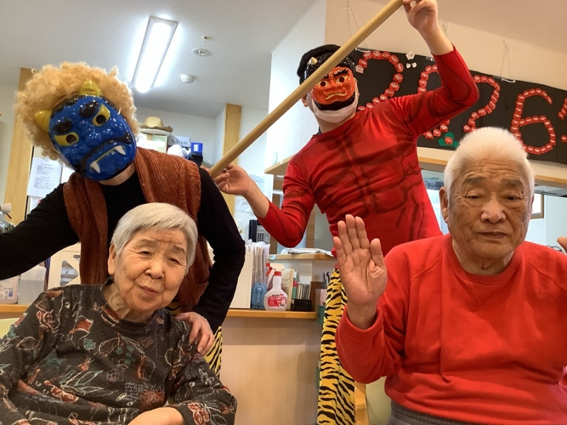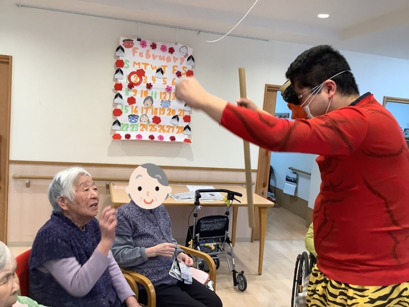 は~いお腹の運動しましょう!と黄色い鬼が豆まきの歌を皆さんに唄っていただくのですが((笑)) 鬼は外!って歌うんですよね( *´艸`)