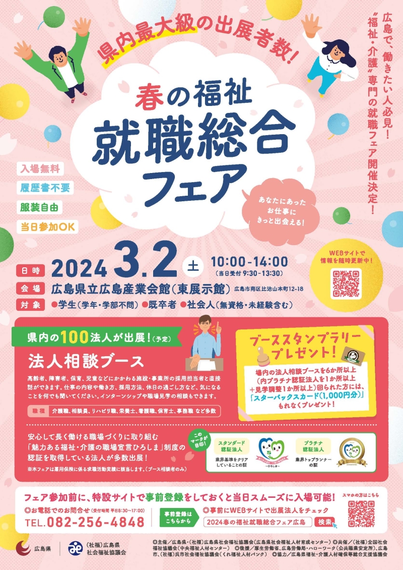 広島県社会福祉協議会主催の「春の福祉就職総合フェア」への出展が決定致しました‼